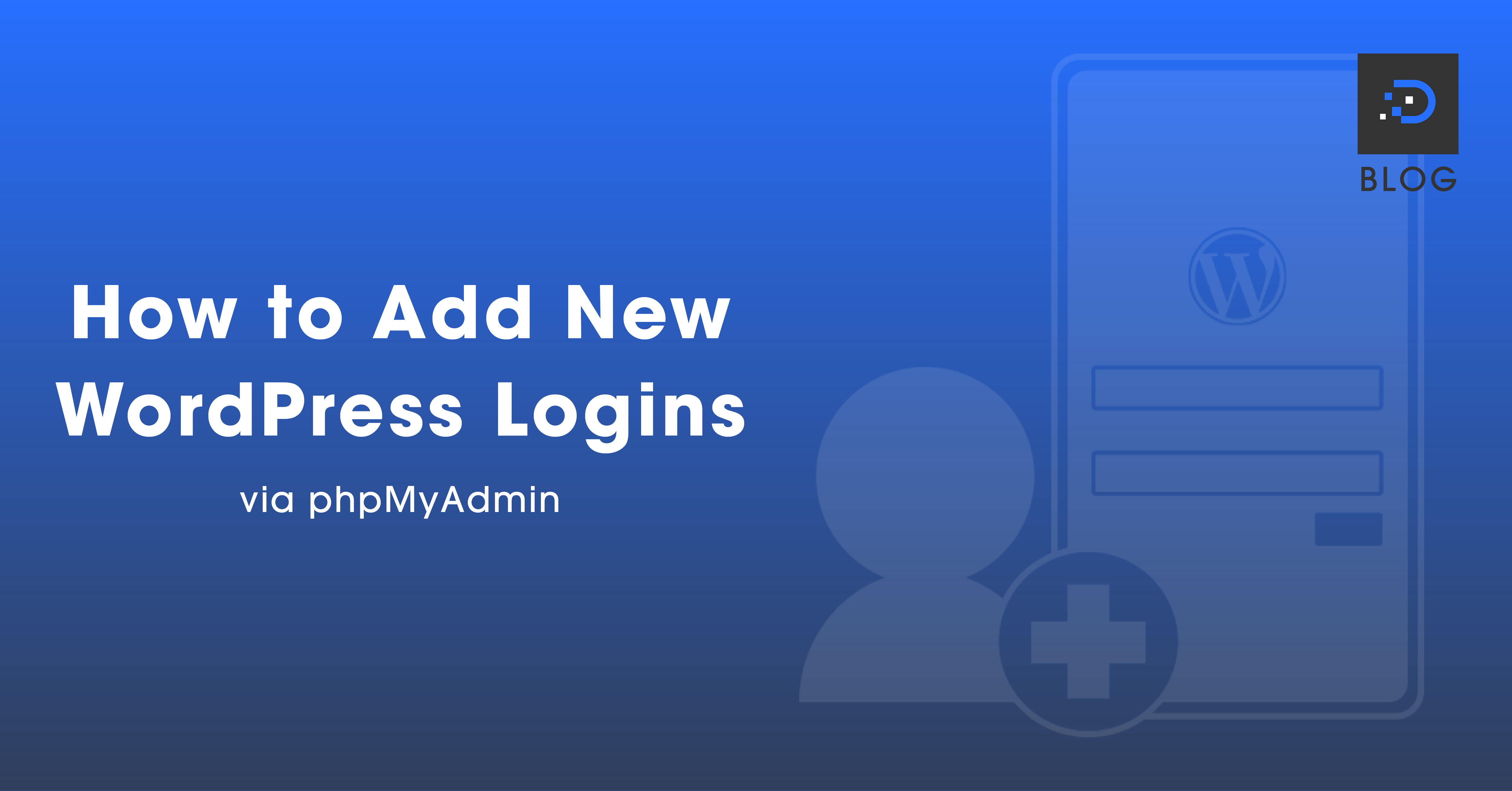 Follow these steps to add new WordPress logins via phpMyAdmin: